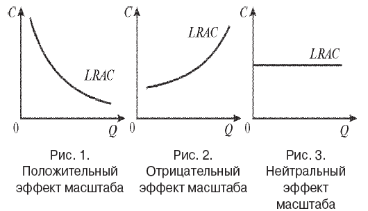 Причиной возникновения отрицательного эффекта масштаба служит нарушение управляемости чрезмерно крупного производства. В этих условиях долговременные средние издержки возрастают по мере увеличения объема выпускаемой продукции.