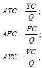 где ATC– средние общие издержки; AFC– средние постоянные издержки; AVC– средние переменные издержки; Q– количество выпускаемой продукции.