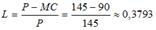 Тогда степень ее монопольной власти (коэффициент Лернера) составляет …