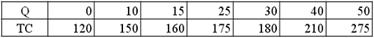 Зависимость валовых издержек (TC) от объемов производства (Q) представлена в таблице: