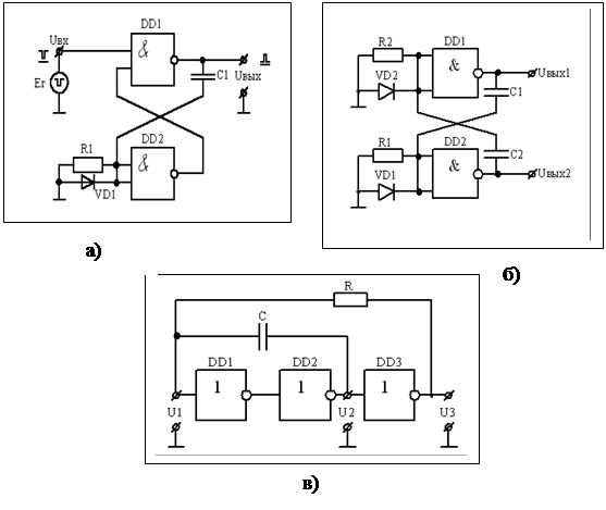а) одновибратора, б) мультивибратора, в) генератора импульсов