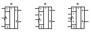 Для реализации других триггеров используется один (одноступенчатый) или два (двухступенчатый) –триггера с соответствующей входной логикой. Двухступенчатые триггеры Т, D и JK показаны на рис.4.2.