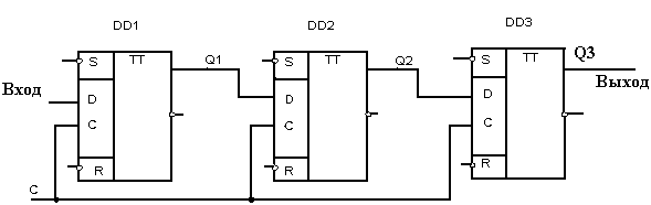 Рисунок 7.1. - Регистр сдвига на D-триггерах