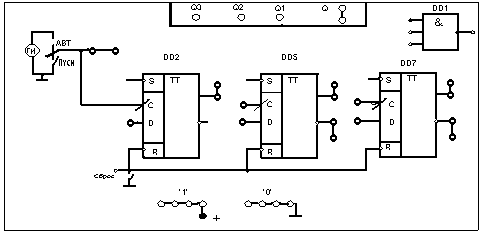 - установить на входе регистра DD2 разряд а3 и, нажав кнопку «ПУСК», произвести запись старшего разряда числа;