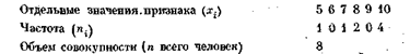 Условимся каждое, отдельное значение признака х обозначать х1, х2,…, xk (в данном примере это 5, 7, 8, 9 и 10 классов).
