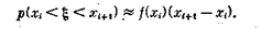 В терминах теории вероятностей плотность распределения можно трактовать следующим образом: вероятность (р) того, что случайная величина (x) примет значение из достаточно малого интервала (XiXi+1), равна произведению длины интервала на высоту прямоугольника (f(xi)), т. е.