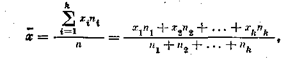 Формула (1) для сгруппированных данных преобразуется в следующую: