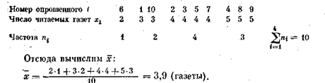 По следующим данным вычислим среднее число газет, читаемых ежедневно индивидами в выборке, из 10 человек:
