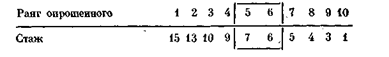 Предположим, что в выборке из 10 человек респонденты проранжированы по стажу работы на данном предприятии: