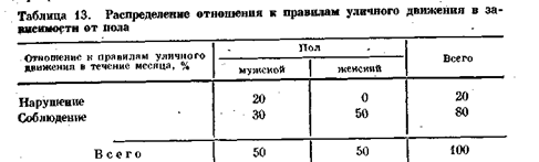 Пример. Вычислим К2для данных табл. 13 в предположении, что K1 независимая переменная, а отношение к правилам уличного движения — зависимая