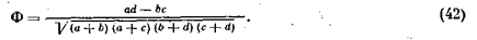 Для характеристики степени связи двух признаков применяется коэффициент Ф, определяемый формулой