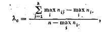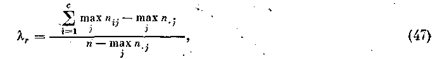 где max n — наибольшая частота в столбце r; max n j — наибольшая маргинальная частота для строк j.