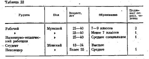вьюера, направленного в Магнитогорск, предполагало учитывать при опросе следующие признаки респондентов (табл. 22).