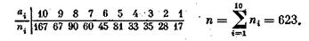 Пример. Рассмотрим случай измерения в десятибалльной шкале ряди ценностей типа «любимая работа», «материальный достаток», «здоровье» и т. д. При 45 испытуемых и 14 предложенных ценностях получены 623 оценки, распределение которых выглядит так.