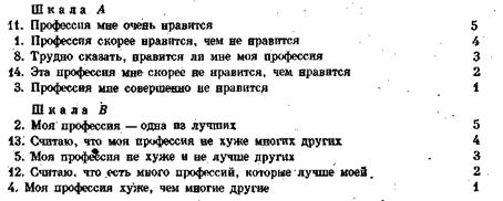 Рассмотрим пример неудавшейся попытки повысить надежность измерения признака «удовлетворенность инженера профессией» с помощью трех параллельных порядковых шкал. Приведем две из них: