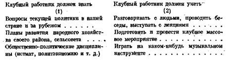 Как Вы считаете, какими знаниями и умениями должен обладать клубный работник в первую очередь, чтобы успешно и творчески работать в области культурно-просветительной работы? (Отметьте не больше трех ответов в каждом столбце.)