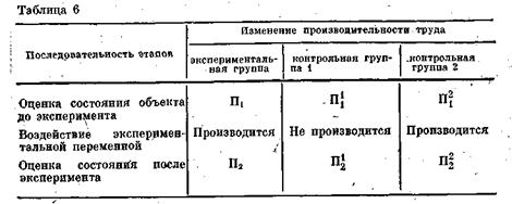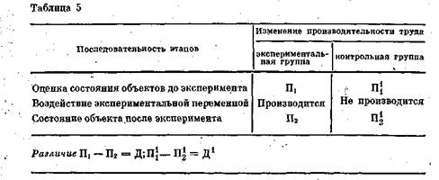 Схематически проведение эксперимента с контрольными группами выглядит следующим образом (табл. 5).