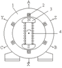 1 – станина 2 - обмотки главных полюсов 3 - полюсные наконечники 4 – щётки 5 – дополнительные полюса6 – коллектор7 – выводные клеммы якоря8 – якорь9 – рым