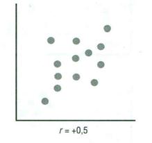 Предположим, что есть пара величин (х, у), измеренных у каждого из пациентов в выборке. Мы можем отметить точку, соответствующую паре величин каждого пациента, на двухмерном графике рассеяния точек (рис 1,2,3). Обычно переменную х располагают на горизонтальной оси, а у — на вертикальной в той же диаграмме. Размещая точки для всех пациентов, получаем график рассеяния точек (корреляционное поле), который говорит о взаимосвязи между этими двумя переменными.