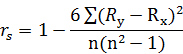 3. Рассчитывается rs — коэффициент корреляции между рангами х и у по формуле: