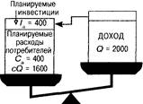 Заметим, что введение автономных инвестиции не привело к увеличению отрицательного значения сбережений на 400, как это имело бы место при увеличении автономного потребления. Объяснение следует искать в том, что рост инвестиций приводит к накоплению капитала, к росту реальных активов в виде новых заводов, транспортных средств, ресторанов и т. д., в то время как рост потребления означает «проедание» созданных ранее материальных благ. Но как бы то ни было, введение автономных инвестиций при Q = 2000 привело к возникновению дефицита, к росту цен и другим явлениям в условиях неравновесного состояния экономики.