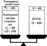 Если национальный доход увеличится до 3000, положение несколько улучшится: дефицит уменьшится, разрыв между инвестициями и сбережениями сократится с 400 до 200, но экономика по-прежнему будет находиться в неравновесном состоянии. И лишь когда национальный доход достигнет уровня 4000, эю будет его равновесный уровень. Равновесие теперь будет проявляться, как и раньше, в том, что совокупный спрос будет равен произведенному национальному доходу; кроме того, теперь оно предполагает равенство сбережений и планируемых автономных инвестиций, т. е. фирмы намерены все мобилизованные ими сбережения инвестировать в расширение и модернизацию своих предприятий.