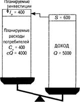 Экономика находится в состоянии равновесия, так как планируемые расходы домашних хозяйств на потребление и планируемые фирмами инвестиции в совокупности равны произведенному доходу. При этом инвестиции равны сбережениям.