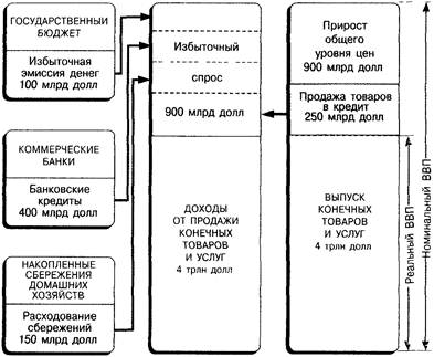 Возникновение избыточного спроса, т е спроса, который образуется за счет ис точников помимо доходов, полученных от продажи продукции в течение данного года (ВВП), приводит к тому, что совокупный спрос в масштабе всей экономики превышает совокупное предложение Это становится причиной того, что в зко номике происходит общее повышение цен