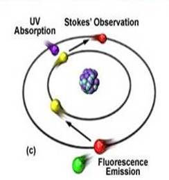 Тело поглощает энергию падающего света, и эта энергия превращается в собственное излучение вещества. При этом длина волны излучения больше длины волны поглощённого света (это правило люминесценции, сформулированное Стоксом в 1852 году). Так происходит потому, что энергия обратно пропорциональна длине волны света, и часть поглощённой энергии затрачивается не на излучение, а на другие процессы. Ультрафиолетовые лучи могут вызвать синее свечение, синие лучи - зелёное, зелёные – красное.