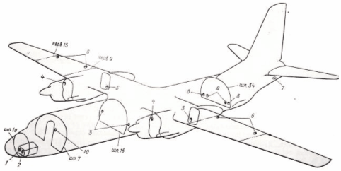 Рис. 20. Размещение на самолете розеток для переносных ламп