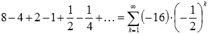 В качестве примера числового ряда можно привести сумму бесконечно убывающей геометрической прогрессии со знаменателем q = -0.5: