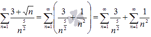 причем каждый из них сходится (смотрите предыдущий пример). Следовательно, в силу третьего свойства сходящихся числовых рядов, сходится и исходный ряд.