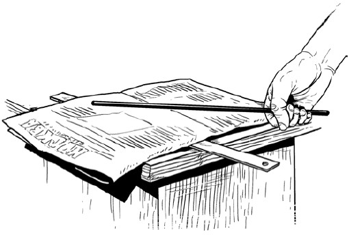 Он разостлал газету на столе, аккуратно расправив ее складки и покрыв ею линейку.