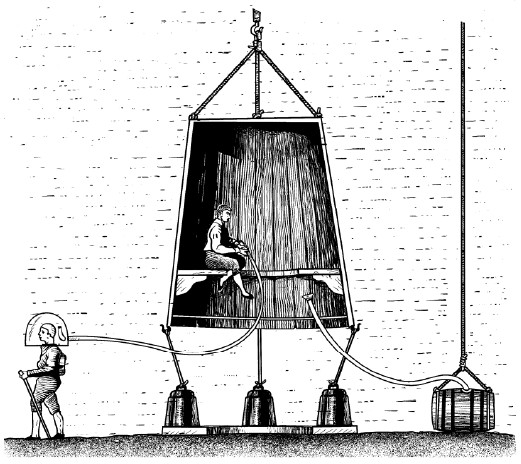 В старину думали, что снабжать водолаза воздухом можно очень просто: провести трубку от его рта наружу, выше уровня воды, и водолаз сможет как угодно долго оставаться под водою, дыша с помощью этой трубки. Когда слон окунается с головой в речную воду, он так и делает: выставляет конец хобота из‑под воды и дышит наружным воздухом. Однако, когда тем же приемом пробовали пользоваться люди, дело кончалось очень плачевно: несчастных водолазов извлекали из воды бездыханными. После нескольких таких катастроф никто уже не решался больше повторять столь опасные опыты.
