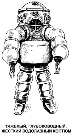 Лучшие водолазные костюмы жесткой системы, рассчитанные на глубину 200 м, весят в воздухе полтонны, под водою – не более 8 кг.