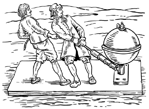 Рис. 75. Второй опыт Отто Герике над образованием безвоздушного пространства