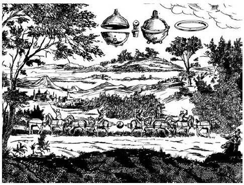 «Сейчас упомянутые полушария, ударяясь о землю при их разъединении, когда лошади выпрягались, повредились и утратили свою шаровидную форму. Я заказал поэтому два полушария больших размеров, диаметром в целый локоть (55 см). Величина их была выбрана такой, чтобы в пустом состоянии их не могли разъединить 24 лошади. Воздушный цилиндр с таким основанием должен весить 5 400 фунтов. В предыдущем опыте разъединение грузов в 2 686 фунтов потребовало силы 16 лошадей. Какая сила нужна, чтобы преодолеть груз в 5 400 фунтов? Расчет показывает, что нужны 34 лошади. А так как впрягалось только 24 лошади, то можно было с уверенностью предвидеть, что полушария не будут разняты. Они и остались соединенными, и воздух внутрь не проник. Но, открыв кран, можно было впустить воздух, и тогда полушария сами распались.
