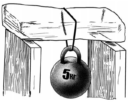 Поперек бруска перекиньте петлю из тонкой стальной проволоки сантиметров в 80 длины, толщиной в полмиллиметра. К концу проволоки привесьте пару утюгов или какую‑нибудь другую тяжелую вещь, весом килограммов 5–10. Под давлением груза проволока врежется в лед, медленно пройдет через весь брусок, но… брусок не распадется. Берите его смело в руки: он совершенно цел и крепок, словно его и не разрезали.