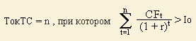 ТокТС - срок окупаемости инвестиций в текущих стоимостях (DPP, Discounted Payback Period (Дисконтированный период окупаемости); n - число периодов;