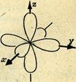Все три р-АО одного энергетического уровня отличаются друг от друга пространственным расположением; их собственные оси, проходящие через обе половины орбитали и перпендикулярные ее узловой плоскости, образуют систему декартовых координат (обозначения собственных осей х, у, z). По этому на каждом энергетическом уровне имеется набор трех атомных р- орбиталей: рх-, ру- и рz-АО. Буквы х, у и z соответствуют магнитному квантовому числу, позволяющему судить о влиянии внешнего магнитного поля на электронную оболочку атома.