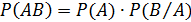 Вероятность произведения двух событий А и В равна произведению вероятности одного из них (А) на условную вероятность другого (В), вычисленную при условии, что первое имело место.