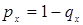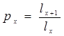 4) вероятность дожить до следующего – px, т. е. какая доля из лиц возраста x доживет до возраста (x+1) лет:
