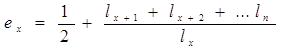 5) число живущих в возрасте x лет Lx – среднюю величину из числа доживающих до x лет и до (x+1) лет:
