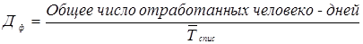 Дф – среднее число дней, отработанных одним рабочим за период;