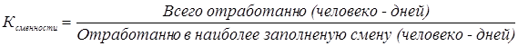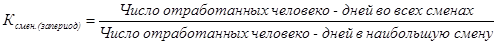 На предприятиях, работающих в сменном режиме, рассчитываются показатели, характеризующие использования сменного режима (для рабочих):