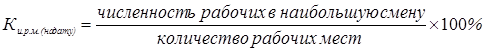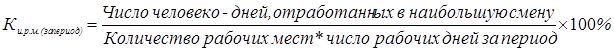 4) Коэффициент использования рабочих мест в наибольшую смену: