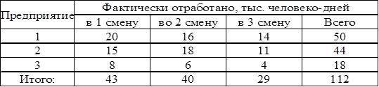 ПРИМЕР: по данным об отработанном времени определить коэффициент использования сменного режима по каждому предприятию в отдельности и по объединению в целом.