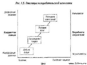 Простая сага о праздновании дня рождения в разное время иллюстрирует эволюцию потребительской ценности, показанной на рис. 1.5.[26]Каждое последующее предложение – ингредиенты в чистом виде (сырье), полуфабрикаты (товары), готовые торты (услуги) и проведение вечерники (впечатления) – становится для потребителей все более ценным, потому что оно все больше и больше приближается к тому, чего хочет покупатель (в нашем случае – классно повеселиться на вечеринке, не приложив никаких усилий для ее организации). Оттого что компании ставят так много разных видов впечатлений, им легче определить между ними различия и установить цену, которая отражала бы ценность данного предложения в глазах покупателя, а не баланс спроса и предложения на рынке конкуренции. Те мамы, которые сами пекли пирог, платили за ингредиенты всего лишь несколько центов. Точно так же и фермы в прошлом несли незначительные расходы (несколько долларов за труд, немного корма), так что им удавалось получать солидную прибыль.[27]