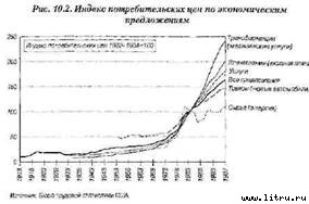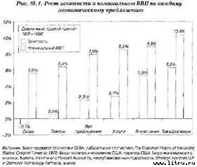 На рис. 10.2 показаны видоизмененные статистические данные по индексу потребительских цен, которые мы уже видели на рис. 1.2. Здесь сектор трансформаций представлен медицинскими услугами, поскольку только их удалось четко выделить из статистики по «услугам», составленной федеральным правительством. "Инфляция здравоохранения", как был ошибочно назван рост этого сектора, не только превосходит сферу услуг, но, как этого можно было ожидать, растет быстрее, чем "инфляция впечатлений".[247]Однако на самом деле трансформации – это не только здравоохранение. В 90-х годах XX века значительно возросли зарплаты консультантов по вопросам менеджмента – сегодня сплошь и рядом они получают 3 тыс. долл. в день, что в 3–5 раз больше, чем в 80-х годах. Общая стоимость бизнес-тренингов возросла с трехкратным опережением темпов инфляции.[248]