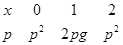 <question> Написать биномиальный закон распределения дискретной случайной величины Х-числа появлений события в 2-х независимых испытаниях, если вероятность появления события в одном опыте равна p.